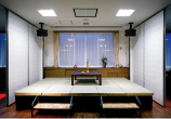 また、欧風のテーブルと椅子、そして多くの観葉植物がやさしさとやすらぎを演出しております。ご入居されている方同士、あるいはご面会に訪れた方との楽しい語らいのスペースでもあります。